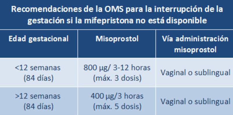 administración de las pastillas de misoprostol. Aunque el aborto farmacológico es seguro,